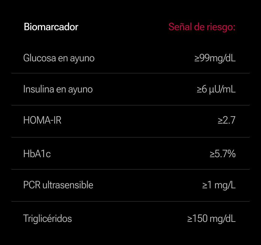 ¿Qué optimizar? Estos biomarcadores importan (imagen) no porque detecten cáncer directamente—si están fuera de rango, NO significa que tengas un tumor. Importan porque alertan sobre condiciones que incrementan el riesgo de desarrollar cáncer, como la obesidad y la diabetes tipo 2.