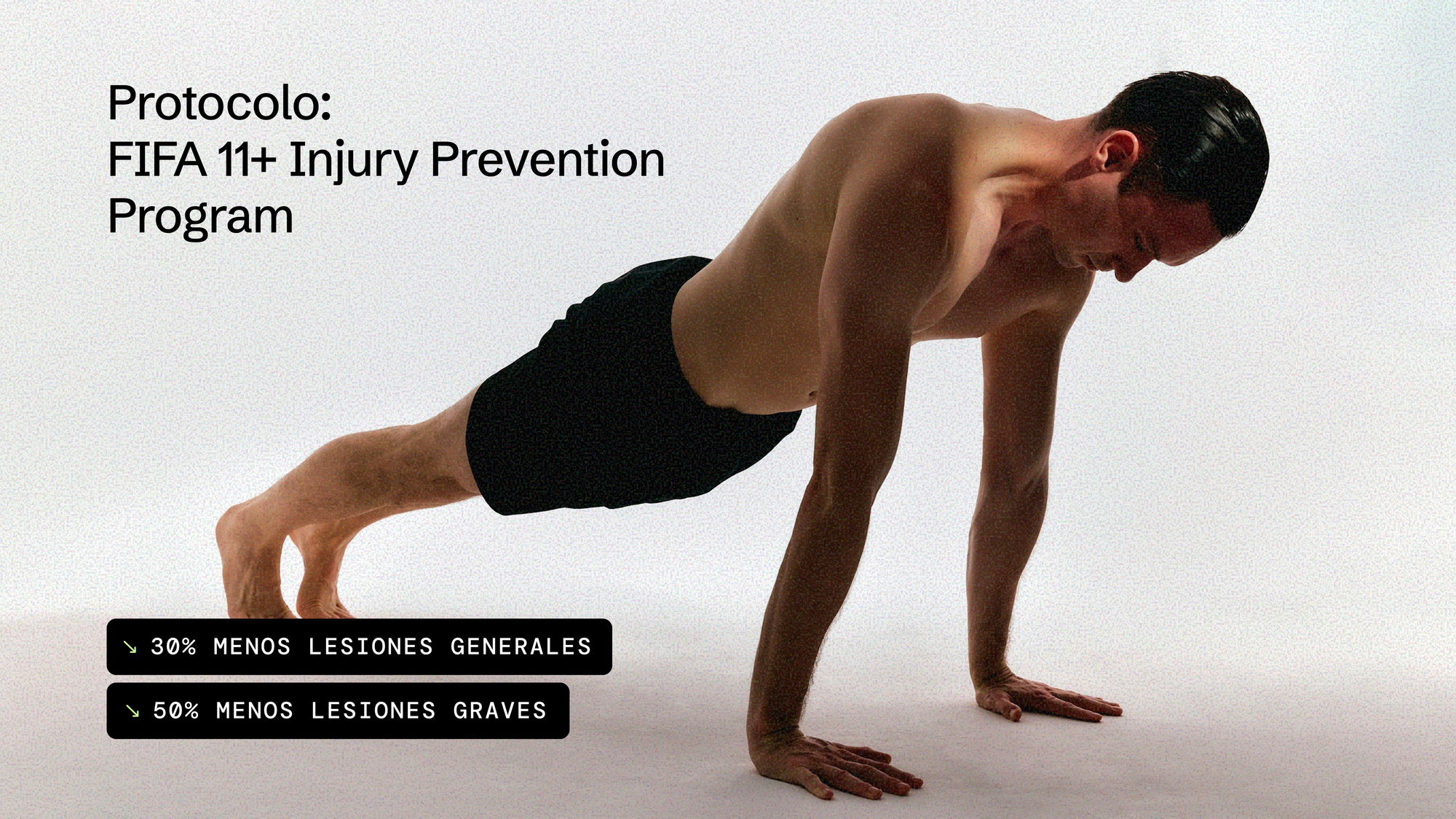 Funciona porque no solo calienta músculos: entrena el sistema neuromuscular para reaccionar antes de que ocurra el daño — estabilidad de core, fuerza excéntrica de isquiotibiales, equilibrio y control de rodilla. Los mismos sistemas que fallan en una torcedura o una rotura de ligamento.